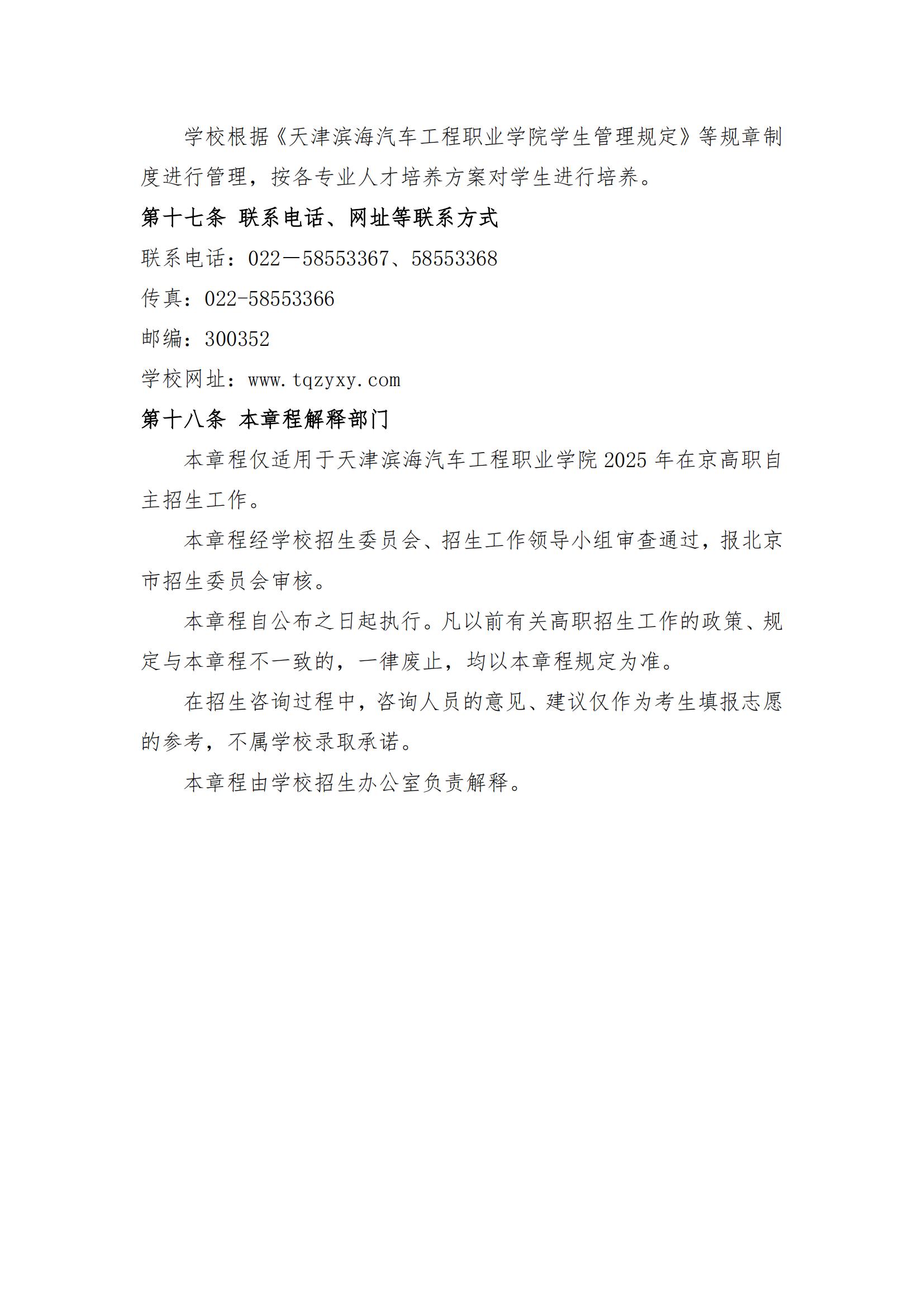 2025 年高等职业教育自主招生章程——北京自主招生简章