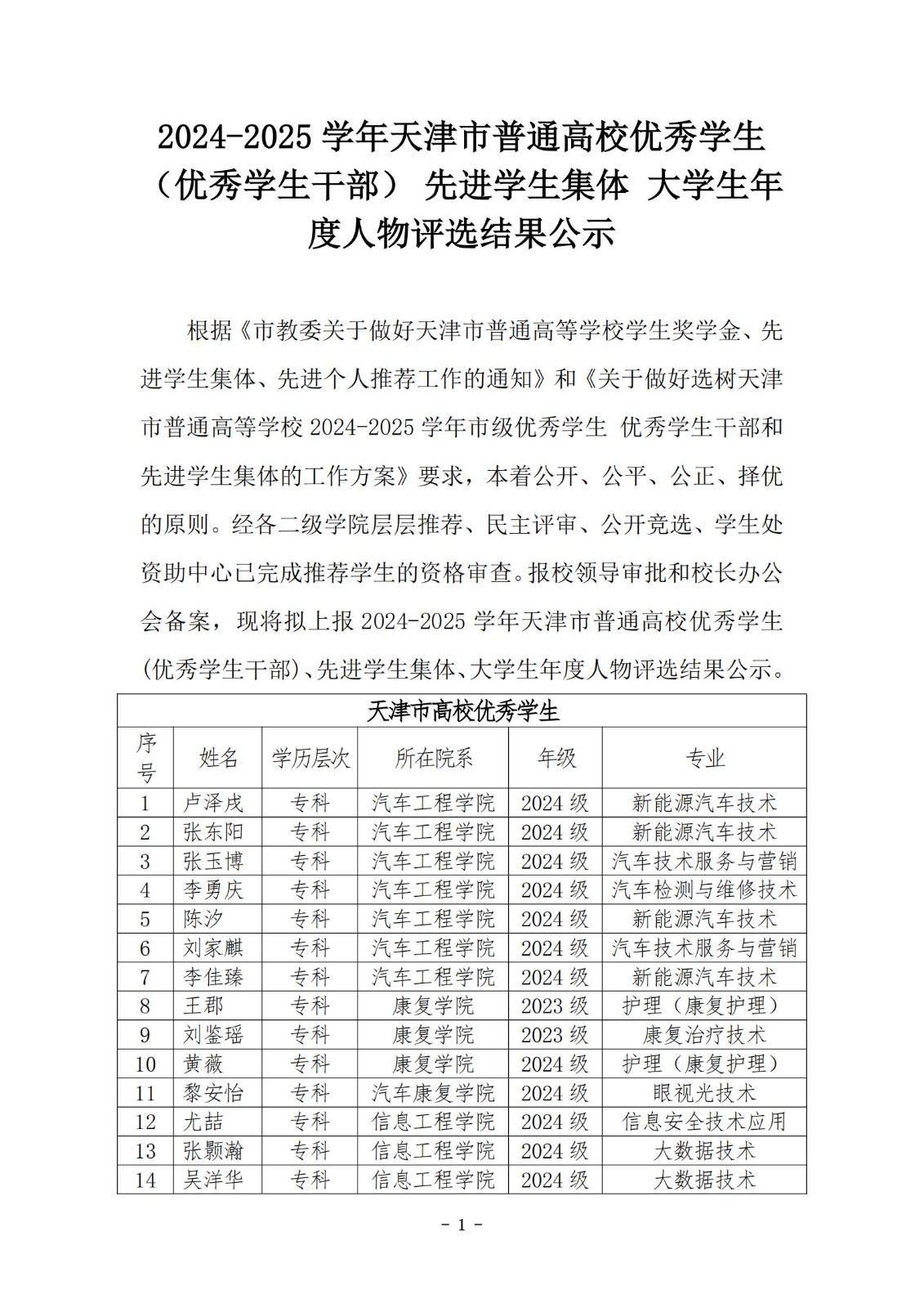 2024-2025学年天津市普通高校优秀学生(优秀学生干部) 先进学生集体 大学生年度人物评选结果公示