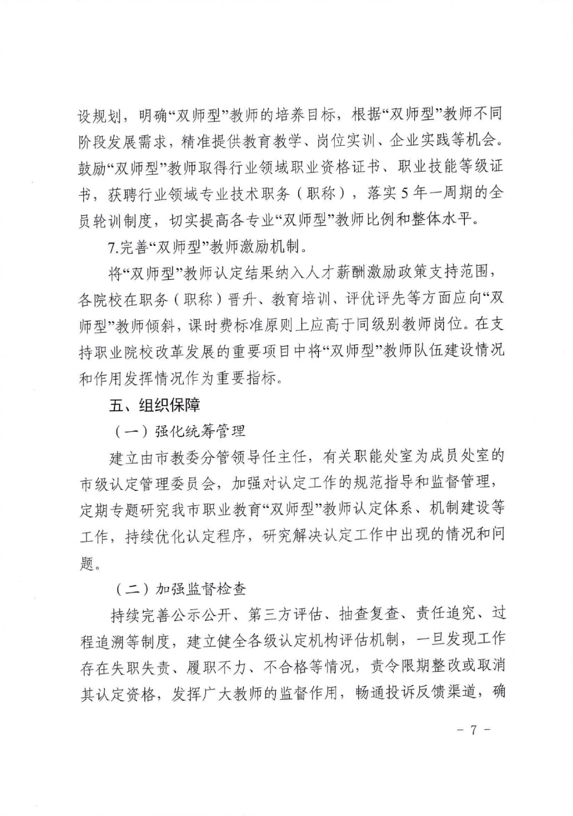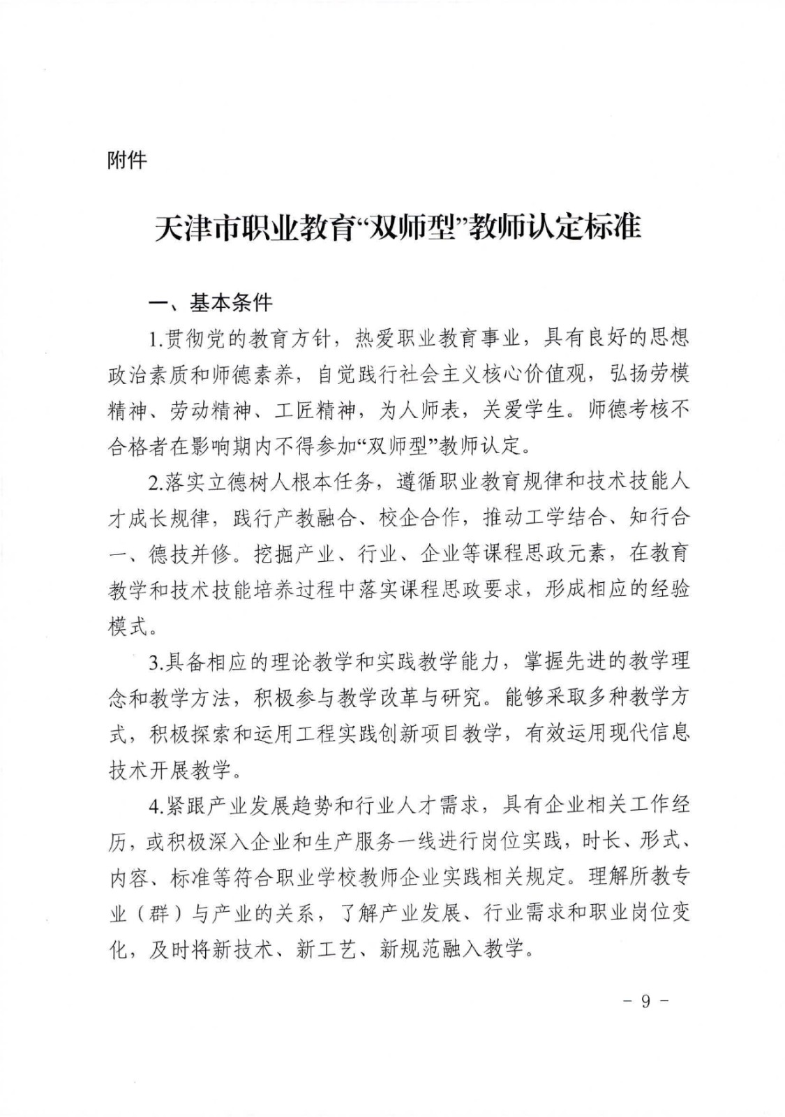 天津市教委关于印发天津市职业教育“双师型”教师认定实施方案