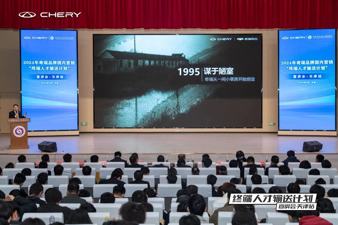 奇瑞集团对奇瑞汽车的发展历程、企业文化、技术创新以及未来发展规划等方面的内容进行了详细讲解;河北盛德、天津鸿启源和北京京风世瑞三家优秀的奇瑞4S店总经理代表讲述了与奇瑞一起成长的故事,发布了招聘计划和岗位标准。