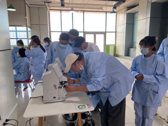 眼视光技术专业于校内特设“企业留用人才考核基地”。大三年级的学生在完成了为期一年的实习后重新回到校内,接受由专业任课老师与企业带教老师联合组织的岗前考核,全部考核项目内容和细节均按照企业留用人才的实际要求设计,个性化打造眼视光技术专业学生高素质技能型人才的培养模式,使顶岗实习过程形成闭环,与企业互相渗透、优势互补。