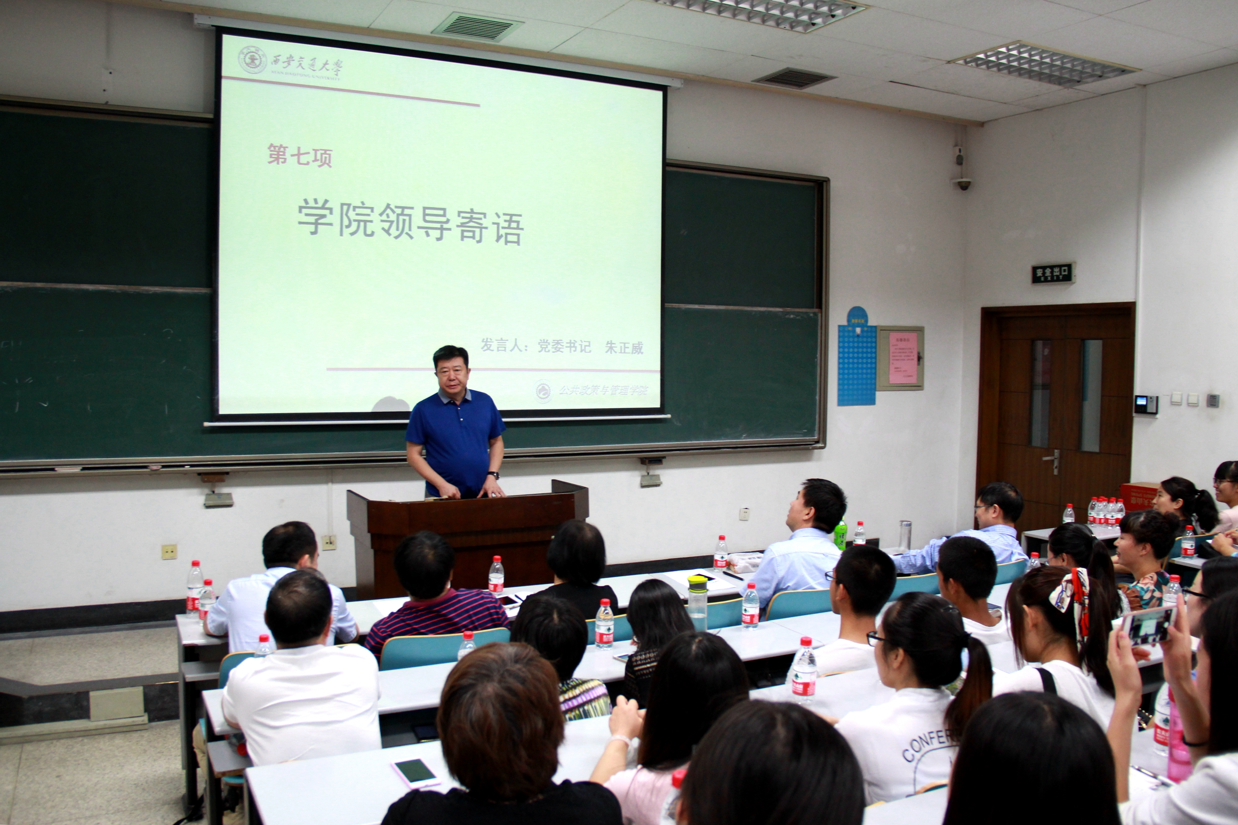 学院党委书记朱正威教授发表讲话。朱正威教授首先代表学院向新生表示热烈欢迎和衷心祝贺。之后,朱老师向大家提出要迅速实现角色的转换,按照公共管理学科的要求调整自己的学业规划,他指出公共管理学科要追求正确的价值理念、体现人类追求,作为公管人要心系天下,决不能甘于平庸。但是我们又不能仅停留在口号层面和理想层面,我们需要从今天起、从此刻起以高标准严格要求自己,不甘于平庸,不辜负时代、学科和自己。