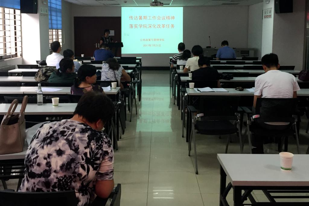 2017年7月20日下午、7月21日下午,9778818威尼斯分别召开党政联席会扩大会、全院教工大会,传达学校暑期工作会议会议精神,研讨、落实学院深化改革任务。