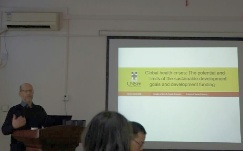 上午,Anthony Zwi教授为学院师生进行了一场题为"Global health crises: The potential and limits of the sustainable development goals and development funding”的学术报告,卫管所部分教师和硕博研究生参加了本次学术报告会。Anthony Zwi教授以埃博拉病毒和尼泊尔地震为例,提出研究者及政府工作者需要积极采取行动以应对全球危机,实现可持续发展目标。此外,Anthony Zwi教授以"Tips and strategies for publishing in the peer-reviewed literature ”为题,就英文论文写作与硕、博士生进行了深入的交流。