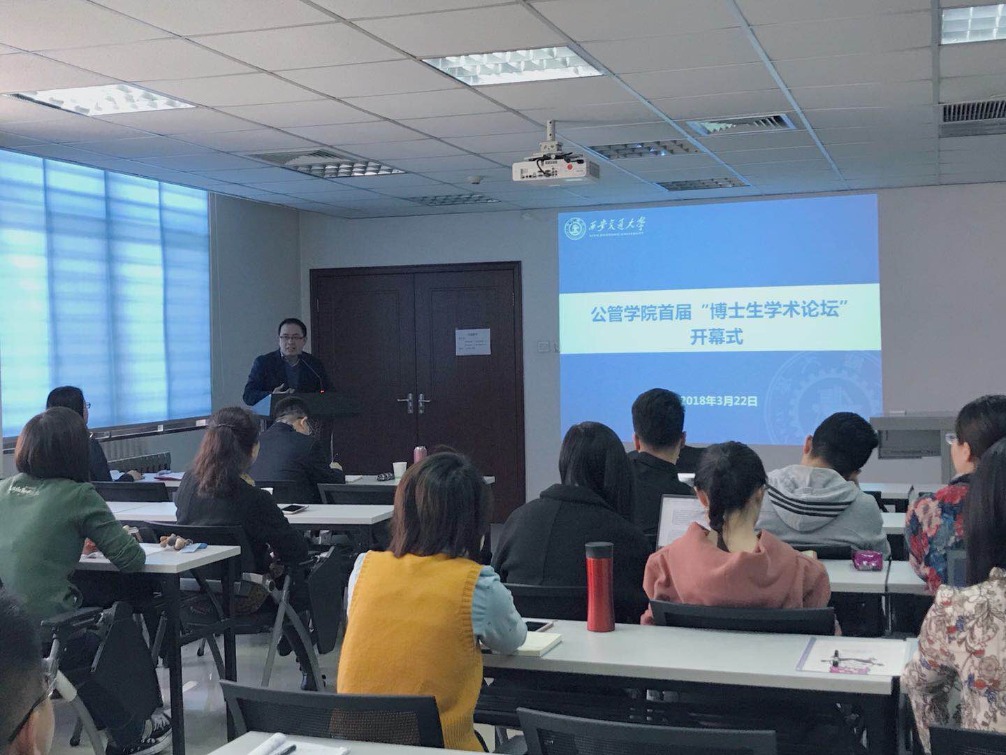 执行院长杜海峰教授为开幕式致辞。他分享了自己求学时期的一些经验与心得,指出“交流能够产生新思想、交流也会给人创造更多的机会。”他提出两点希望,一是希望讲座者珍惜讲座的机会,把专业领域的内容讲清楚、萃取精华,二是希望听讲座者听清楚,用心听、用脑思考,利用好这个平台,珍惜交流的机会,创造更好的自己。