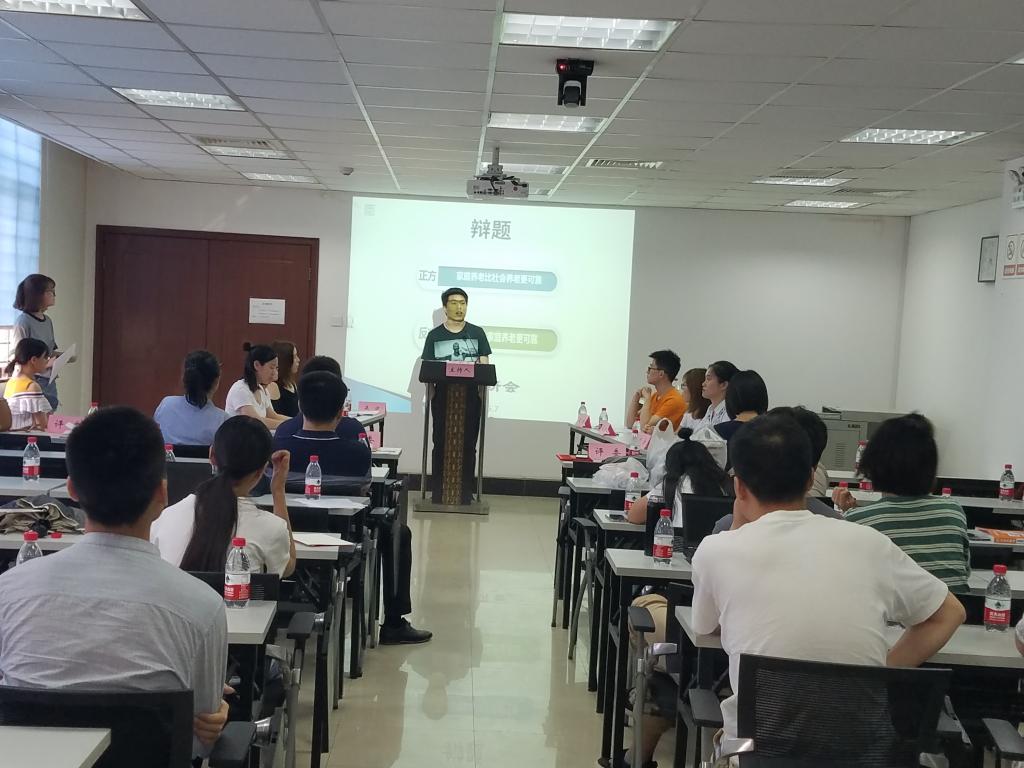 分享过后,一场别开生面的辩论友谊赛将现场推入高潮。思辩学社17级社员廖可儿同学做辩论赛的主持人,辩题为:家庭养老与社会养老哪个更可靠?正方代表队“对方说的都不队”王薇然、万佳辉、李石花;反方“社会养老哥,人好话又多”曹奕、魏海霞、胡钊源。双方就辩题展开了激烈的交锋。随后在各位专业评委的评审下,反方获胜,最佳辩手由正方三辩李石花摘得。王立剑老师、郭人杰、刘畅等从概念界定、辩论方式等等多个方面进行了深入的点评。