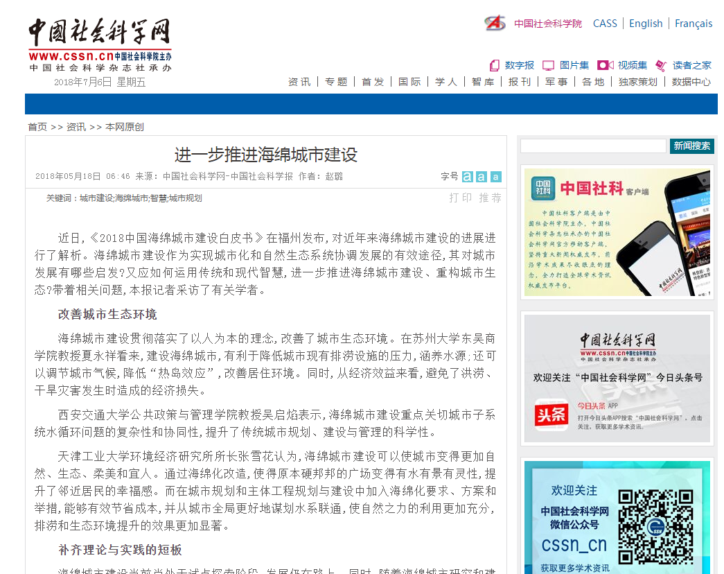 近日,《2018中国海绵城市建设白皮书》在福州发布,对近年来海绵城市建设的进展进行了解析。海绵城市建设作为实现城市化和自然生态系统协调发展的有效途径,其对城市发展有哪些启发?又应如何运用传统和现代智慧,进一步推进海绵城市建设、重构城市生态?带着相关问题,本报记者采访了有关学者。