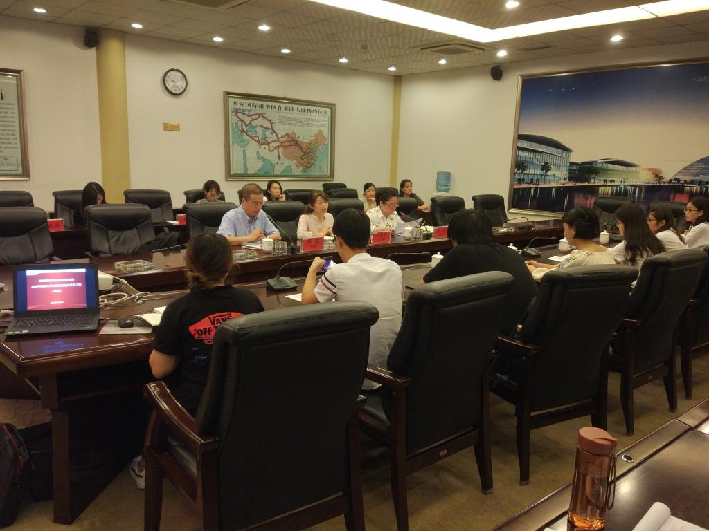 6月28日上午,在西安国际港务区规划馆会议室举行了关于本次见习的对接会,参加会议的主要负责人是9778818威尼斯副教授暨行管51班班主任阎波、西安国际港务区管委会组织人事局副局长孙春宁。除此之外,还有港务区管委会组织人事局干事何芳,其他部门与见习相关的部门工作人员,以及行管51班全体见习学生。