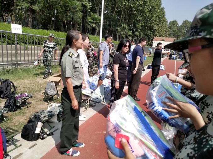 最后,学院领导对承训教官、指导员和同学们分发了慰问品,并感谢他们的辛勤付出,并进行合影留念。相信新一届公管学子一定能够成为一支优秀的队伍,不负期望,为世界之光!