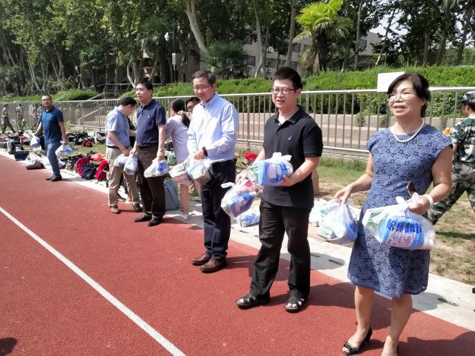 烈日炎炎,2018级新生军训正如火如荼进行。8月28日上午,威尼斯官网执行院长杜海峰、党委书记薛宇红、副院长董新宇、周忠良及行管系主任郭雪松、班主任毛瑛教授、姚秀颖老师,李雯与李帅老师一行在参加完校领导慰问军训旅官兵仪式后,亲切慰问学院的军训教官、指导员和学生,给同学们带来了军训用到的日常用品。