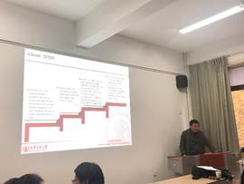 教师代表们为留学生们分别介绍学院各系所情况,吕书鹏副教授介绍了行政管理系,重点介绍该系发展历程、研究领域、师资队伍、学生培养、科研贡献以及国际化交流情况;胡芳肖副教授介绍了社会保障系,分别从该系总体概况、研究平台、研究成果以及师资队伍和研究领域进行具体介绍;姜全保教授介绍了人口与发展研究所,并针对该所基地建设、研究人员构成、所取得的标志性成果进行了详细介绍;萧笑博士从科研团队、课程设置、研究成果、科研项目等方面了介绍卫生政策与管理研究所。