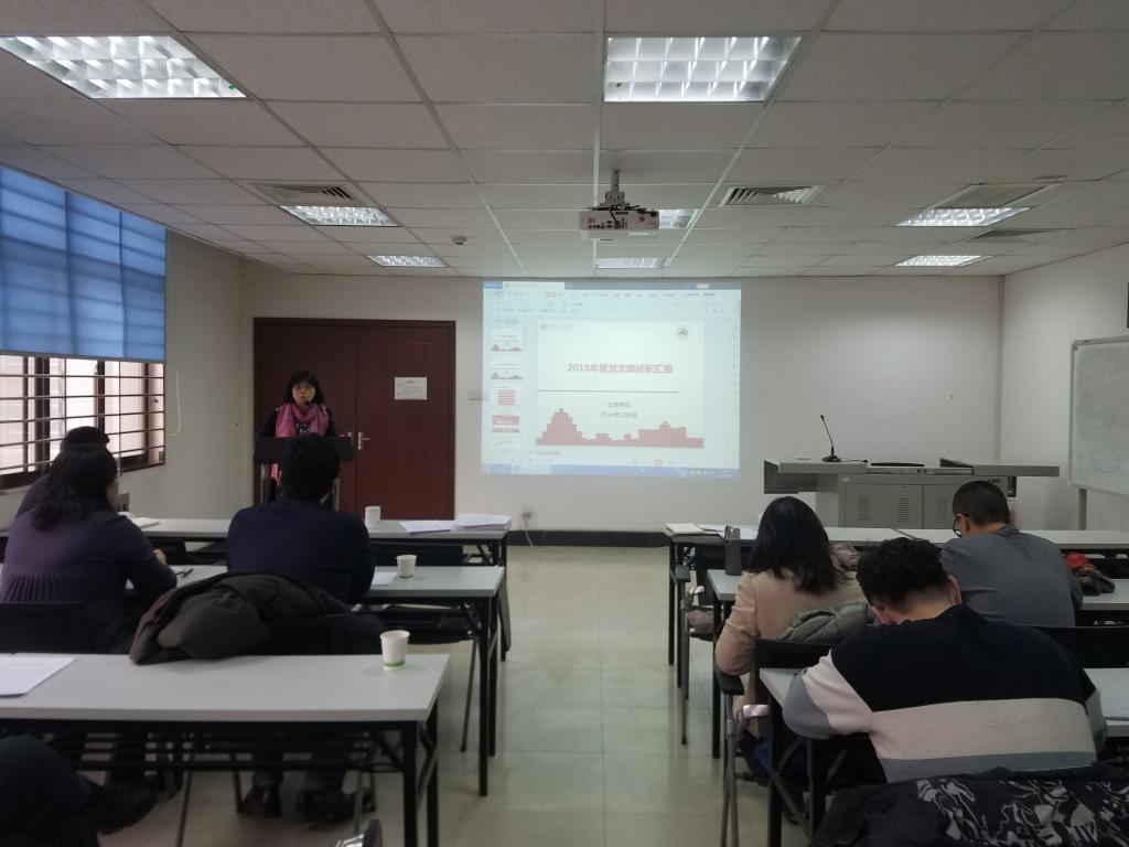 随后,开展了各党支部的现场和书面述职汇报工作,各支部书记按照支部工作条例和学校对于党支部建设的意见及学院关于党建工作的要求进行了详细汇报。硕2018级党支部重点汇报了支部自成立以来的各项制度建设、主要活动开展以及支部成员的整体情况;硕2017级党支部以2018年度参与创建十佳和特色党支部的佳绩为重点,从教育党员有力、管理党员有力、监督党员有力等七个有力进行了总结,尤其是在组织师生有力方面开展了学习西迁精神、参观创新港、弘扬延安精神、帮扶少数民族学生等一系列特色活动;硕2016级党支部着重汇报了参与班级奖学金评定及开展改革开放40周年主题活动等重点工作;博2017级、博2018级党支部从专题学习开展情况、“三会一课”制度落实情况、主要活动组织、支部建设存在的不足以及2019年工作计划等角度进行了说明;金禾师生联合党支部结合金禾中心的特点开展了相关党建工作和活动。教工第一、第二、第三党支部结合换届选举的现场述职和书面述职进行了工作总结,其它支部以书面述职方式参与考核评议。