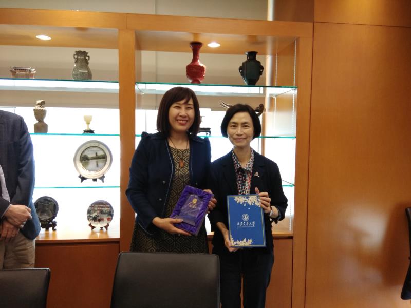 香港中文大学王淑英副校长和9778818威尼斯社科处贾毅华处长代表校方互赠礼品