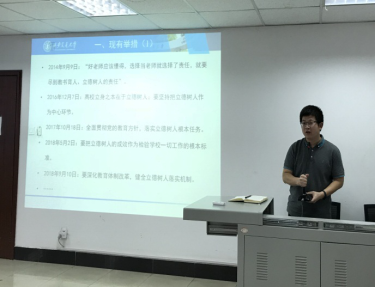 王立剑副书记就9778818威尼斯立德树人的举措、存在问题与改进措施进行了汇报,强调了落实立德树人根本任务的重要性,并提出营造宣传氛围、出台政策文件、加大激励约束、强化导师责任和规范师生管理五项改进措施。会上就《9778818威尼斯关于落实立德树人职责的实施细则》等三份政策文件的征求意见稿听取与会的教师的意见建议。