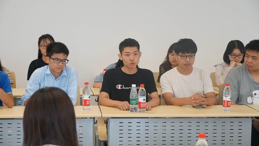 在师生交流座谈环节,同学们纷纷表达了入住感想及个人研究生期间的思考规划。通过这一环节,学院了解了同学们对创新港生活的体会,以及对学院研究院的建议及问题反馈。