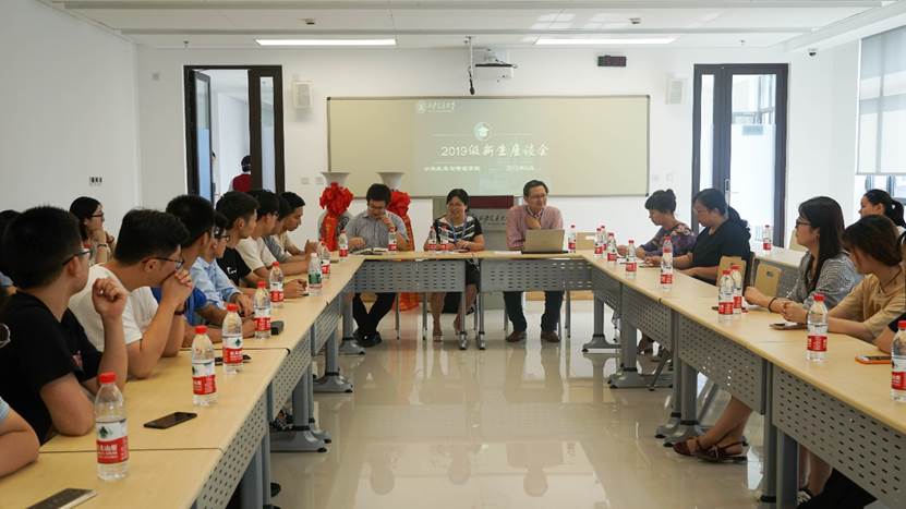 2019年9月6日,9778818威尼斯迎来入驻创新港的首批新生—2019级研究生。迎接工作主要分为迎新报到和新生座谈会两部分。下午三时许,学院在5号巨构6045会议室召开新生座谈会,出席会议的有学院党委书记薛宇红、执行院长杜海峰、党委副书记王立剑、导师代表梅红以及教务老师忽春娣。