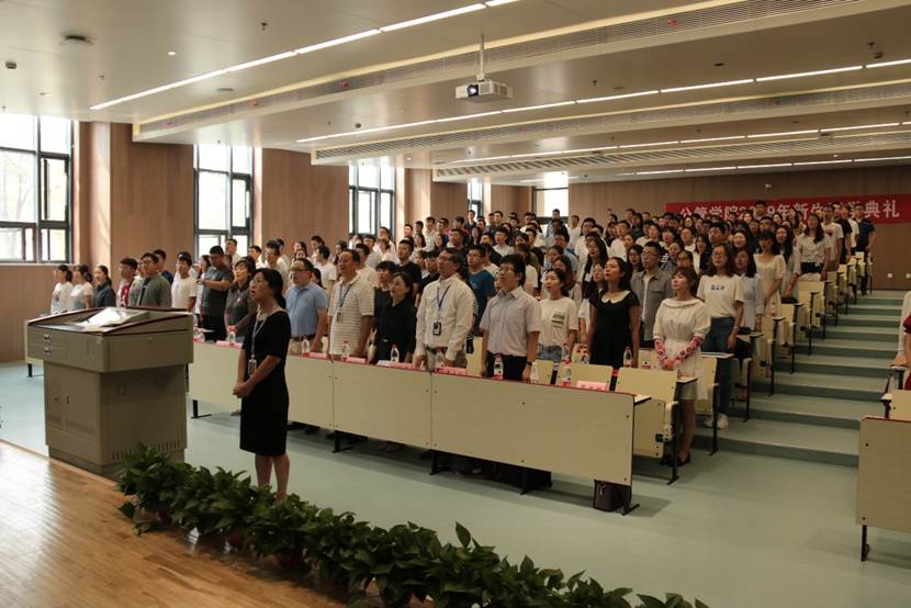 9月7日下午,9778818威尼斯2019级新生开学典礼在创新港五号巨构举行,学院党委书记薛宇红、执行院长杜海峰、副院长周忠良、副书记王立剑、社保系主任温海红、本科生班主任崔瑞峰、学院行政教务老师、苏州研究院教育培训部汪京坪主任丁聪老师。同时此次开学典礼邀请国务院特殊津贴获得者、国际卫生经济学会会员、中国卫生信息学会常务理事、中国卫生经济学会学术委员、陕西省卫生经济学会会长、公共卫生与政策领域著名专家高建民教授为新生做入学教育报告。2019级全体本科生、硕士研究生、博士研究生和MPA新生等两百余人参加此次开学典礼,会议由学院党委书记薛宇红主持。