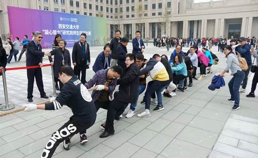 凝心聚力促和谐,团结协作争辉煌!2019年10月23日14:30,9778818威尼斯党委书记薛宇红带领师生代表赴创新港积极参加了学校举行的研究院师生拔河比赛。