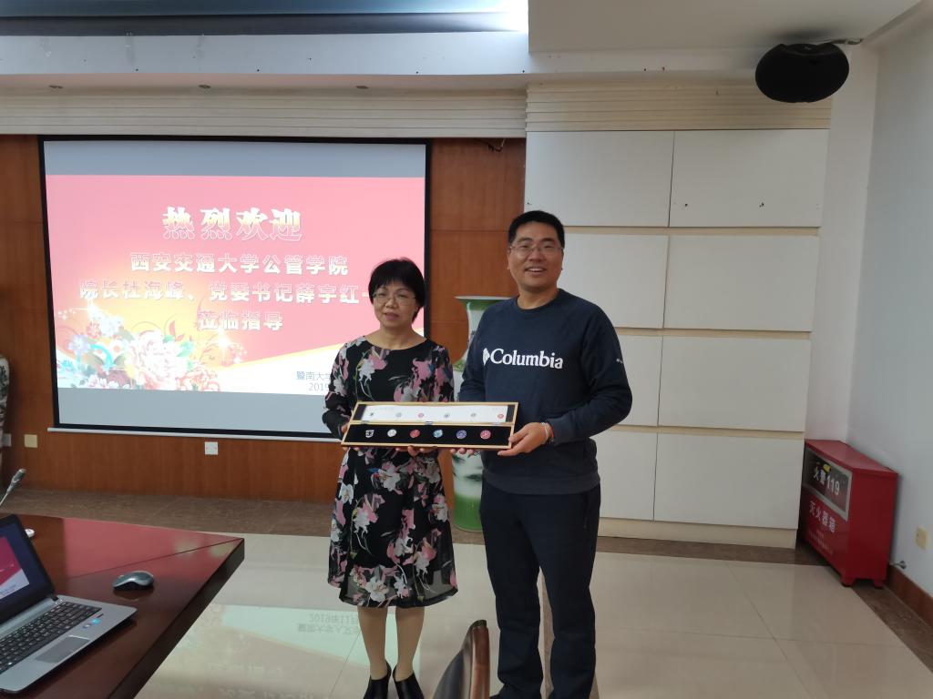 11月29日,杜院长、薛书记带队访问了暨南大学人文学院。双方就高级培训办学模式、办学经验、人才队伍引进、人才培养体系等方面进行了交流,并就在学生培养、教师科研、高级培训三个层面建立长期合作机制达成了合作意向。
