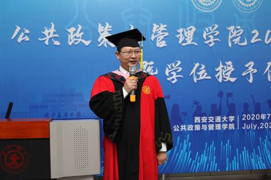 随后执行院长杜海峰教授致辞寄语毕业生。他首先祝贺毕业生们圆满完成了学业,同时勉励大家怀揣青春梦想与家国情怀,在未来的工作生活中,即使再忙也不要忘记初心,希望毕业生们勤于思考、勤于学习、懂得感恩,并且常回“家”看看。