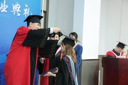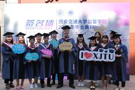 最后,由学院老师为身着学位服的同学们一一颁发了学位证和毕业证并合影留念。很快,带着不舍与感动,典礼在“交大我爱你”的音乐声中圆满结束。