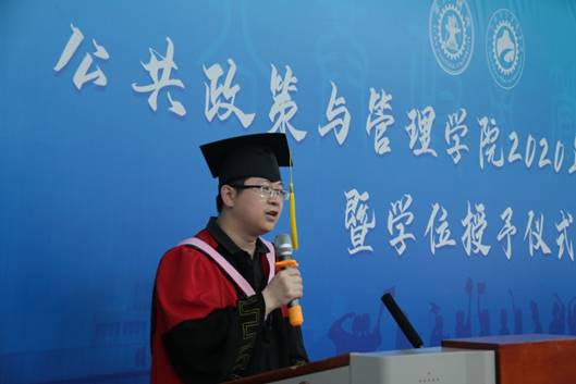 MPA毕业生代表党成杰发言 教师代表王洋教授讲话