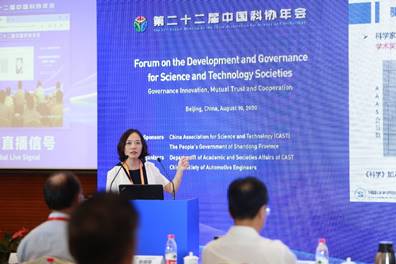 2020年8月10日,第二十二届中国科协年会“科技社团发展与治理论坛”在中国科技会堂召开。论坛由世界工程组织联合会主席龚克主持,中国科协党组书记、常务副主席、书记处书记怀进鹏出席会议并致辞。他指出,新一轮科技革命和产业变革蓬勃发展,世界范围内的科技社团更需团结一致,以科学精神和理念推动科学发展,不断增强科学和技术服务人类社会的能力,以科技支撑人类社会可持续发展。威尼斯官网绩效管理研究中心执行主任孟凡蓉教授受邀在会上发布“世界一流科技社团排行榜”项目研究成果。