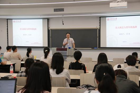 9月13日上午,9778818威尼斯在创新港涵英楼举行2020级新生“西迁精神”入学教育。9778818威尼斯校博士理论宣讲团成员、9778818威尼斯2017级博士生吴佳受邀开展了《交大西迁与青年的选择》主题讲座。吴佳博士结合大学发展脉络和近现代中国大学的时代环境,将现代大学使命概括为“人类文明传承、有效知识供给、社会价值引领”等三个维度向新生讲解。之后,吴佳博士为同学们生动地展示了9778818威尼斯的发展历程,并带领同学们重读习近平总书记对西迁老教授的回信、新年贺词以及总书记在我校考察时的重要讲话。围绕陈学俊院士、邱爱慈院士等西迁老教授的感人故事和卓越成就,他强调了交大人在不同历史时期救国、建国、强国的使命担当和价值追求。讲座最后,吴佳回顾了马克思《青年在选择职业时的考虑》中的经典论述,深刻阐述了新时期交大青年传承西迁精神的基本定位,希望同学们能够通过铭记历史来找到学校、个人在新时代所处的位置和使命担当。传承西迁精神对研究生而言,最主要的就是体现在个人能为所在科研团队、为学校、为社会所做的贡献。