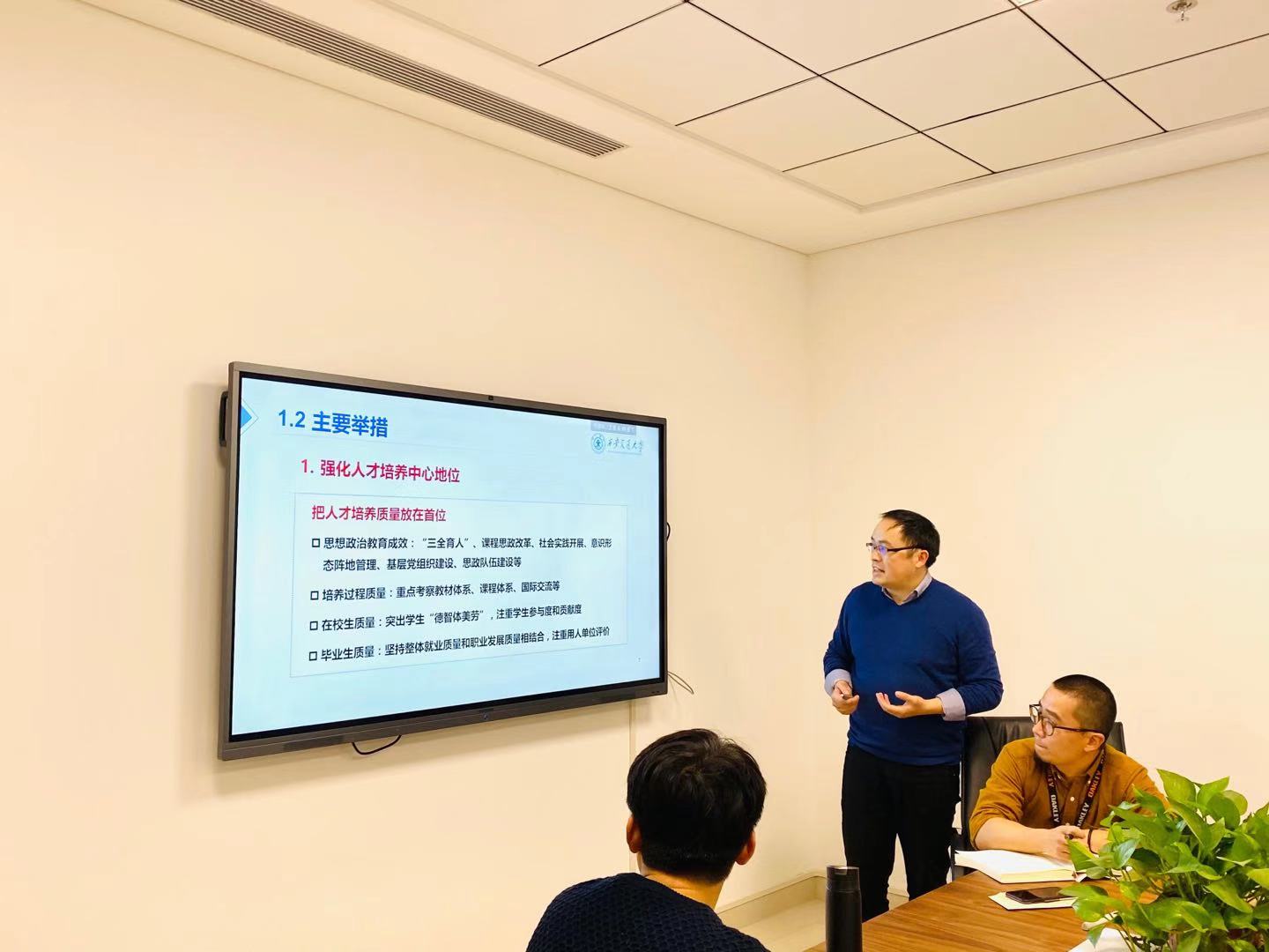 接着,周忠良副院长围绕第五轮学科评估工作简介、指标体系解读以及后续的工作安排进行了汇报。他表示,在保持原有“人才培养质量”、“师资队伍与资源”、“科学研究水平”和“社会服务与学科声誉”四个一级指标体系框架基本稳定的基础上,进一步强化人才培养中心地位,坚决破除“五唯”顽疾,改革教师队伍评价,突出质量、贡献和特色。进一步强调了要加强学科声誉,加强重视教材出版,将抗击疫情和脱贫攻坚作为突出社会服务贡献的亮点。最后,周院长向与会人员明确了后续工作分工,成立了各项任务的工作小组。