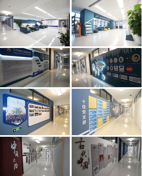 创新港研究院建设以来,从未停止思考建设什么、怎样建设、和建设—成长等问题。研究院建设从来不是简单的物理堆砌,而是理念、思维和功能的复合成长体。根据研究院建设成长阶段性动态特点提升平台水准档次,9778818威尼斯先后多次召开党政联席会议反复论证与评价研究院文化建设方案,确定以建设成长和办学理念为出发点,将楼层设置为各具主题的功能性区域,进行了研究院标识及基本情况简介文化墙、学生活动文化墙、中国之治学科历史沿革文化墙建设。为了有效提高环境的交际功能,研究院在楼层分布上穿插设置了教工之家、学生活动展示区、公共研讨区、办公交流岛等设施,将环境美化与人文交际进行功能融合。